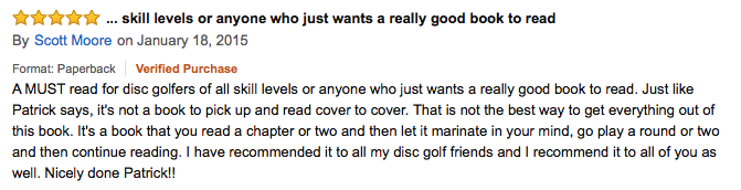 “The one book every disc golfer needs… If you only pick up one book on this list, make it this one… This is one of those books that will end up with highlighter and notes all over it as you read it again and again.” – Mind Body Disc Golf Reading List (MindBodyDisc.com)