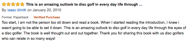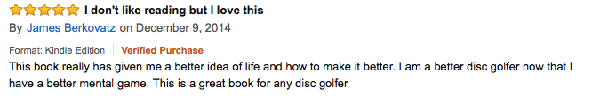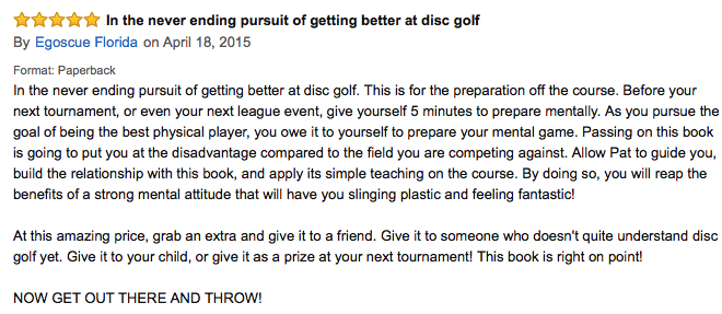 “It is a cool book to motivate and inspire you, speaking in terms that Disc Golfers can understand. Definitely check this book out.” – Bobby Brown AKA Cool Daddy Slick Breeze (The Disc Golf Answer Man Podcast)